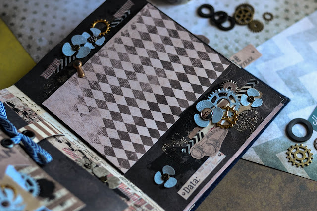Альбом украсили железные шестеренки, вырубка и брадсы гвоздики.